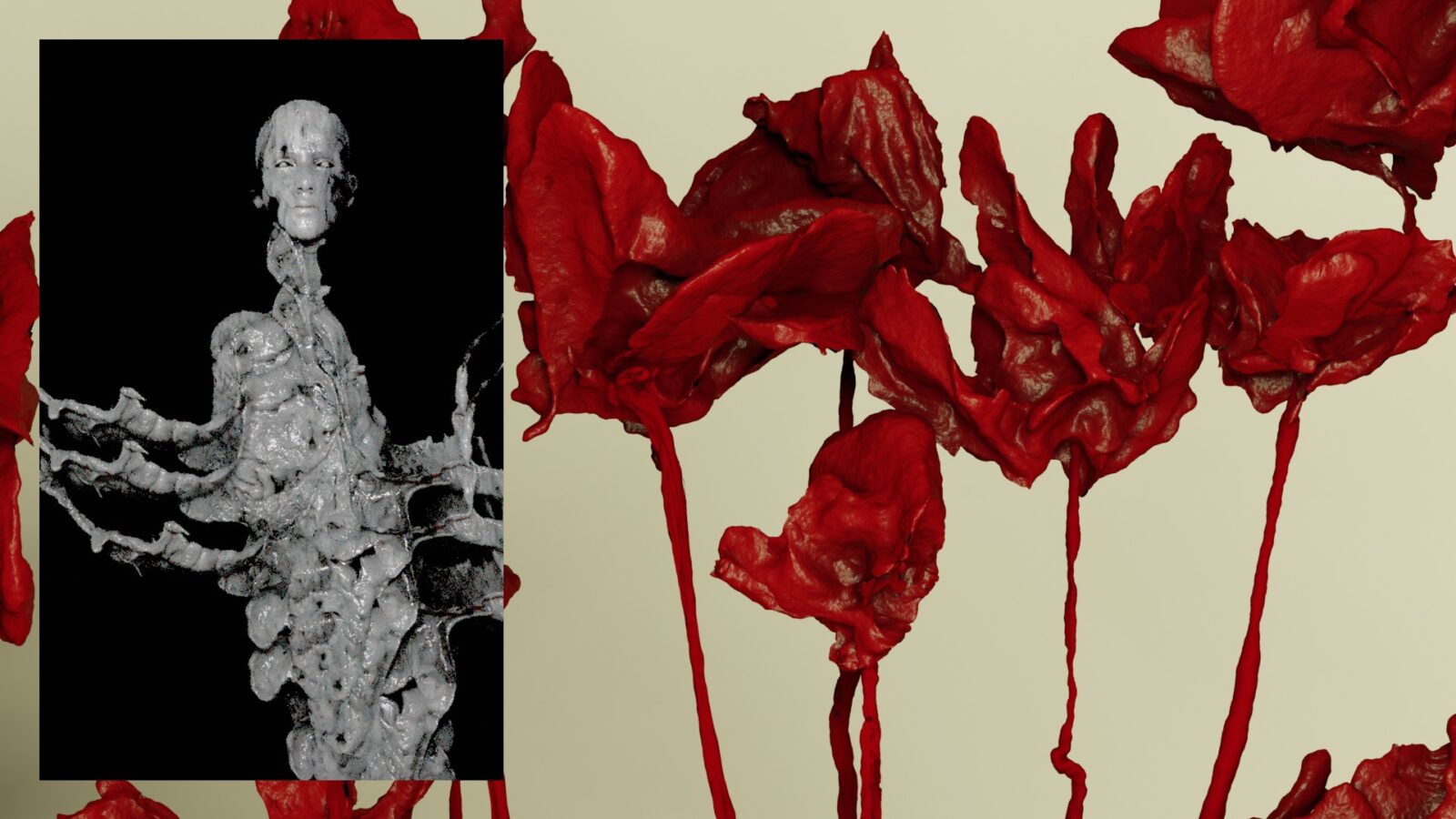FENÔMENO is a 3 channel audio-visual installation by brazilian visual artist Enco and musician Andras_2020. Floating over the modulated falsettos and electronic sounds of the latter, Enco’s extremely textured digital sculptures shed light on the infinite loops of transformation of the organic matter throughout the cycles of life and death. With the installation, the artists intend to create a space where the material and metaphysical can metaphorically co-exist. Using the digital as a reverse manifestation of sentience or ectoplasm.