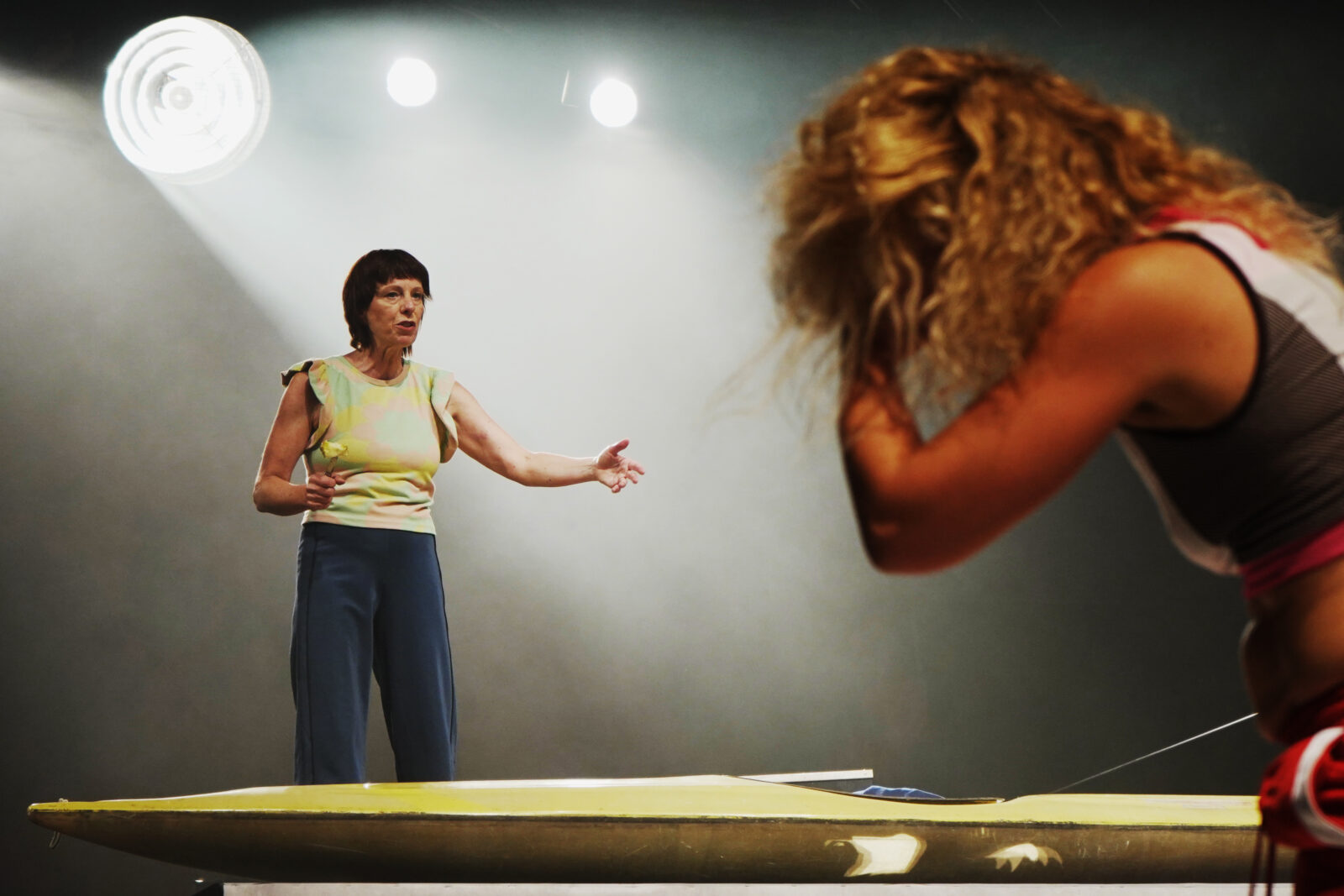 The world is on fire. Three women on the shore of a lake. Trapped between water and fire. There is hardly any chance of survival. But then a boat with two seats washes up. Meanwhile, Medea negotiates with Noah whether and how the human species can be saved from the apocalypse, and three actresses recollect fragments of their lives. And above all, there is the question: Whose stories have room on the boat?